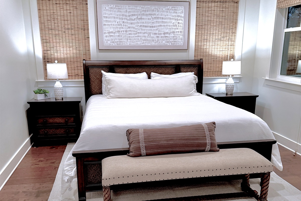 We have decorated in a beach casual theme with the latest in countertop surfaces & beautiful hardwood floors. The master suite upstairs has king sized bed, a walk-in shower with a rain shower head, a walk-in closet, a private balcony/porch, and a desk/make-up area. Our guest room has a queen sized bed and a private bathroom. We have a bunkroom with built-in bunks to accommodate 4 with a private bath.
